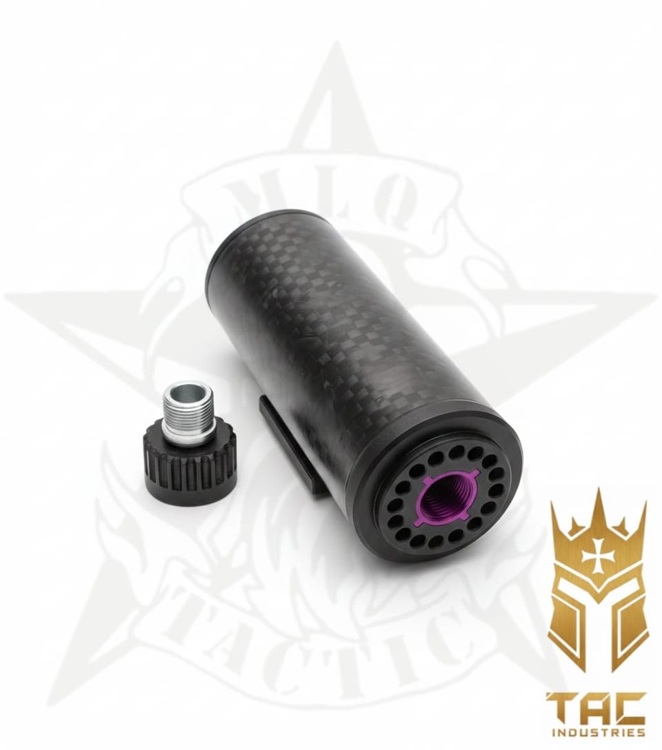 Fabricado en resina técnica de alta resistencia, ideal para uso intensivo en entornos exigentes. Cuerpo en fibra de carbono 3K real, que combina ligereza extrema con una estética profesional y robusta. Dimensiones compactas: 120 mm de largo × 45 mm de diámetro. Peso ultraligero: solo 82 gramos, sin comprometer la durabilidad. Rosca estándar 14×1 CCW (opcional en CW bajo pedido), compatible con la mayoría de réplicas del mercado.